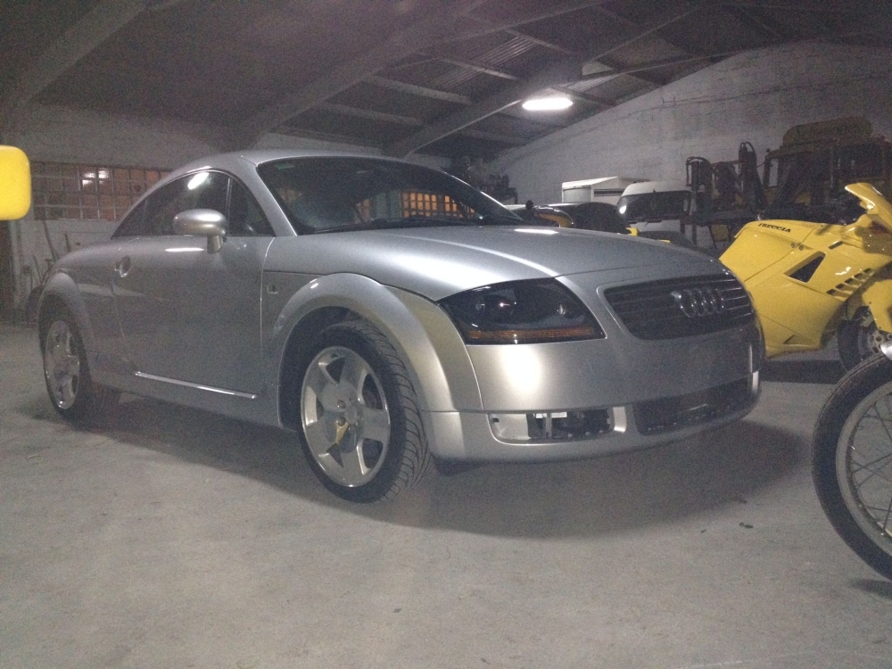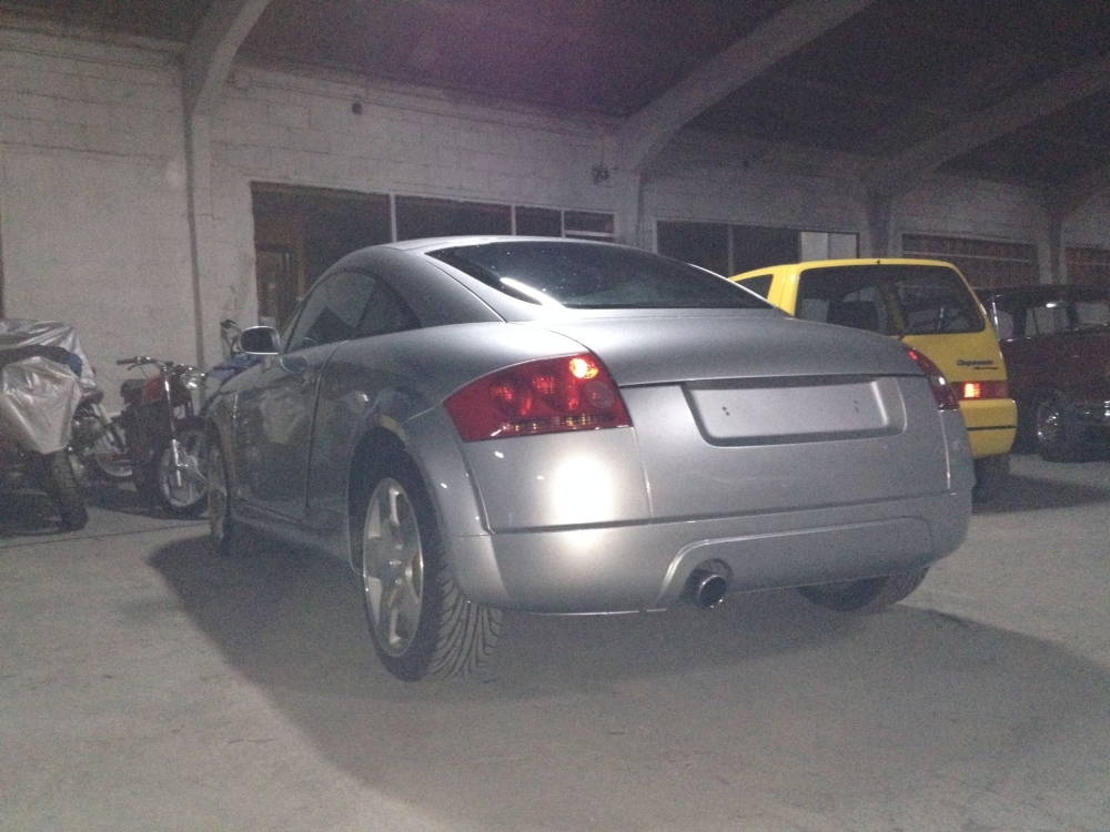 El desarrollo del Audi TT comenzó en septiembre de 1994 en el centro de diseño de Simi Valley (California) a partir de un diseño de Freeman Thomas. Del interior se encargó Romulus Rost.5 El líder del departamento de diseño de Audi era Peter Schreyer. Un año después se presentó al público un prototipo del Audi TT Coupé en el Salón del Automóvil de Fráncfort. Posteriormente, ese mismo año siguió la presentación del prototipo del Roadster en el Salón del Automóvil de Tokio con el nombre de TTS, de uso ya abandonado por NSU Motorenwerke AG en el NSU Prinz. La respuesta positiva de los visitantes y de los periodistas de revistas automotrices llevó a Audi a tomar la decisión de fabricar el prototipo, únicamente con cambios ligeros de diseño. Después de solamente tres años de tiempo de desarrollo, llegó al mercado en el otoño de 1998: el Coupé con un motor turbo de 1798 cm³ (1,8 L; 109,7 plg³) y opcionalmente de 180 a 225 CV (178 a 222 HP) (132 a 165 kW) basándose en la plataforma del Volkswagen Golf IV. En el otoño de 1999 se presentó el TTS como TT Roadster.6