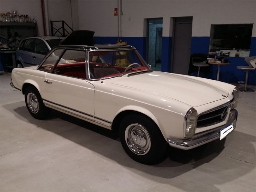 El Mercedes Pagoda es un modelo de coche producido por Mercedes-Benz entre los años 1963 y 1971. Su diseño distintivo es reconocido por su techo rígido abombado y sus ventanas laterales planas. El Pagoda fue el primer coche de producción con frenos de disco en las cuatro ruedas y contaba con un motor de seis cilindros en línea y una transmisión manual de cuatro velocidades. El coche también ofrecía una suspensión independiente en las cuatro ruedas y una dirección asistida, lo que lo hacía muy maniobrable y cómodo de conducir. El Mercedes Pagoda se convirtió en un verdadero icono de la moda y la cultura popular de la época.