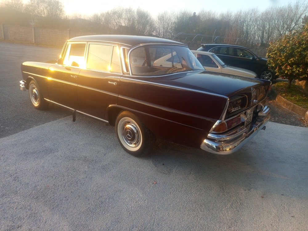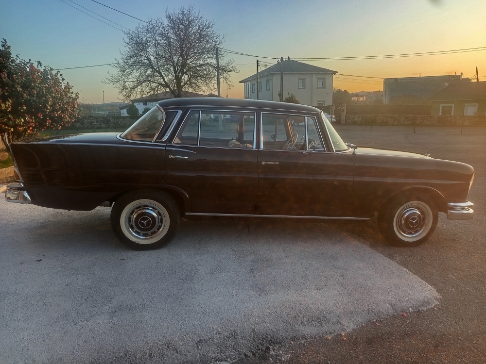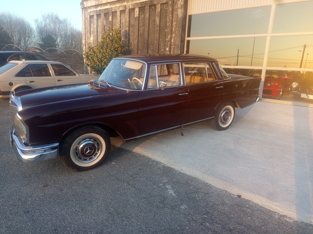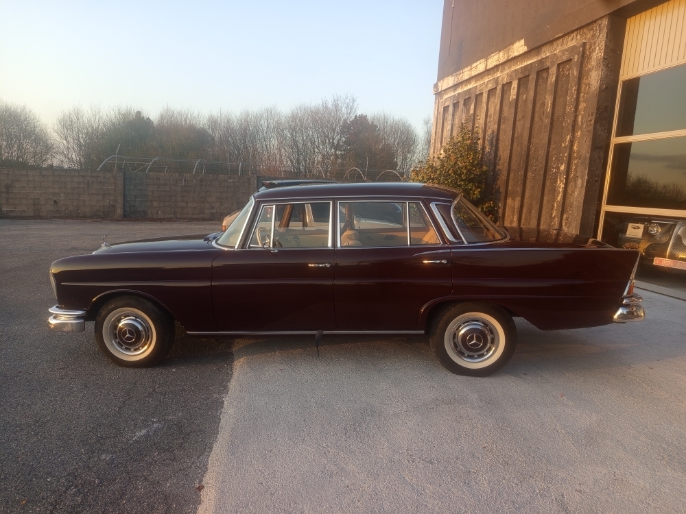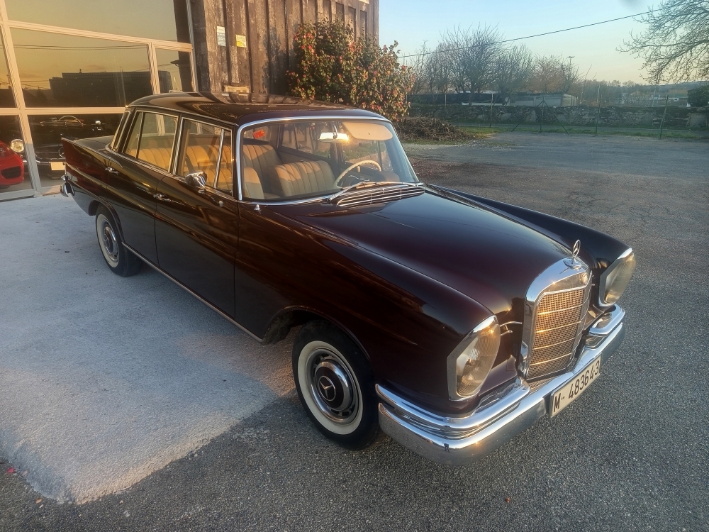 La producción en serie del sedán de 4 puertas comenzó en agosto de 1959, y se estrenó en el Salón del Automóvil de Fráncfort en otoño. Inicialmente, la serie consistió en los modelos 220b, 220Sb y 220SEb. Estos reemplazaron a los sedanes Ponton ( W105 ), 219, ( W180 ) 220S y ( W128 ) 220SE, respectivamente. El 220b era una versión básica con pocos detalles cromados, tapacubos sencillos y un interior básico sin huecos en las puertas. Los precios eran de 16.750, 18.500 y 20.500 marcos alemanes , con una tasa de ventas aproximada de 1:2:1.